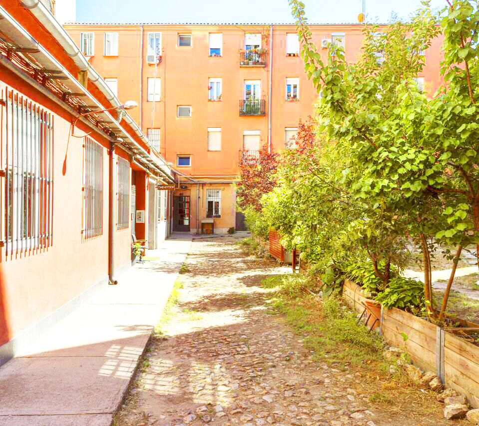 Patio Servet se encuentra dentro de un tranquilo patio de manzana, entre Embajadores y Lavapiés, en el centro de Madrid. El espacio era una antigua caballeriza ubicada en el patio de la finca, que sirve como jardín de acceso a algunas viviendas y otros locales.